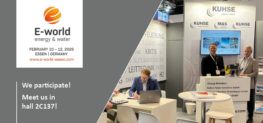 Let’s talk about your requirements for control and process control technology in complex power plants at e‑world in Essen and, if desired, discuss the potential for the Kuhse Microgrid Manager in your hybrid applications. In the field of industrial combustion technology, we will present our latest Eldur and Surtur burners.